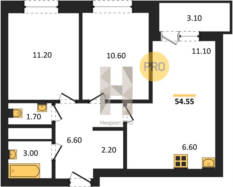 54.55 м2