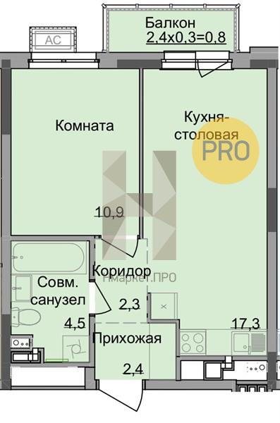 1-комнатная №295