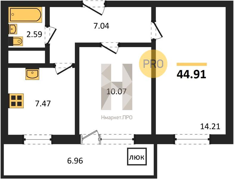 44.91 м2