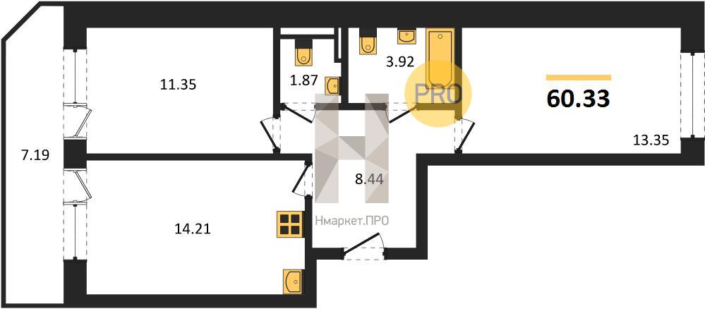 2-комнатная №60