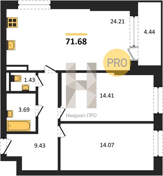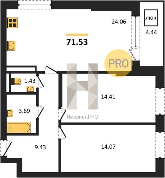 3-комнатная №71