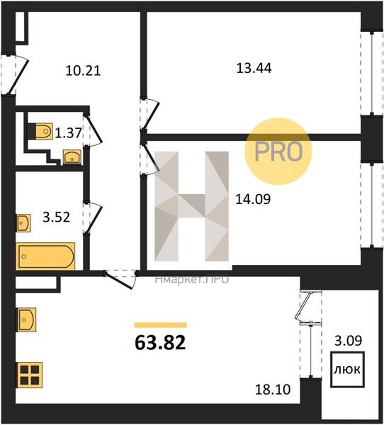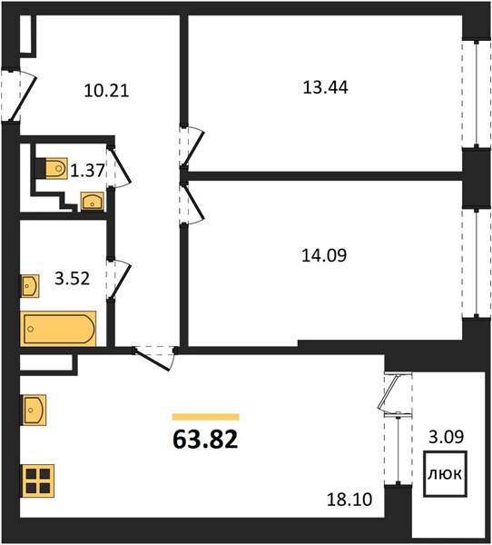 63.82 м2