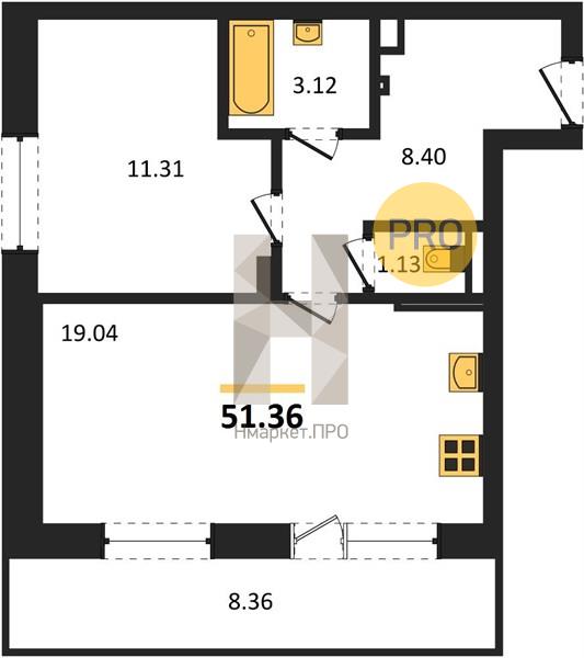 1-комнатная №52