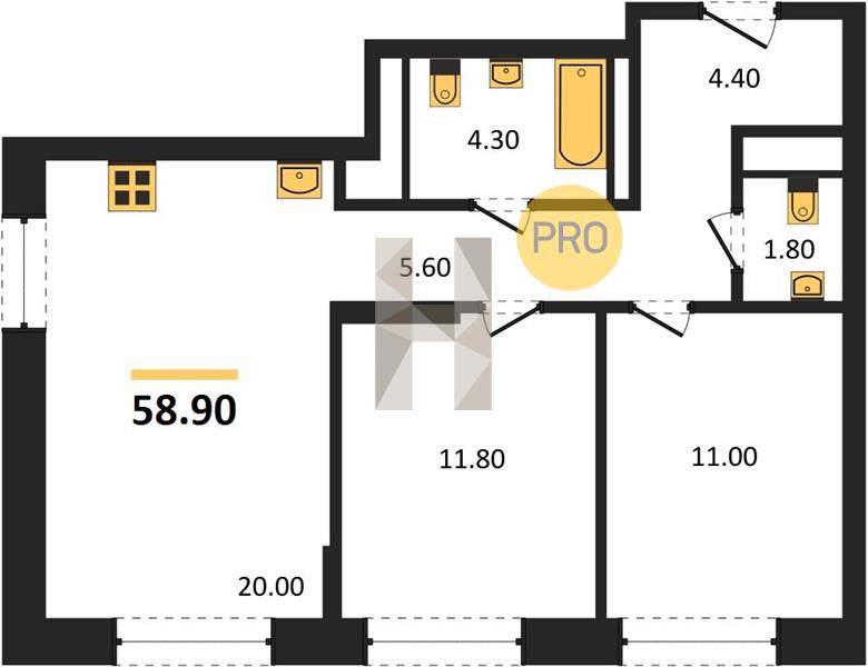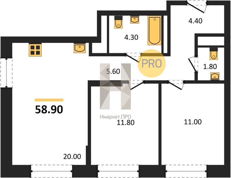 58.90 м2