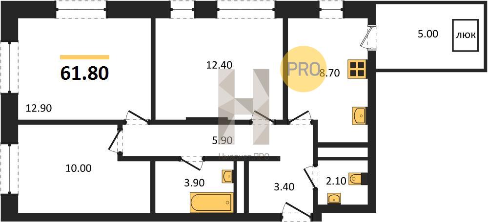 3-комнатная №104